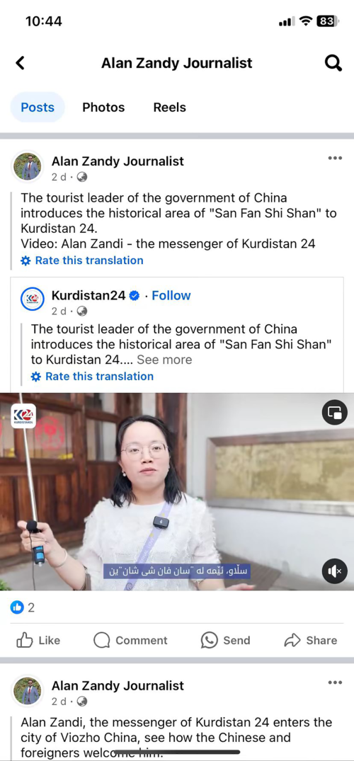伊拉克记者Alan Zandy个人社交账号转载参访视频。
