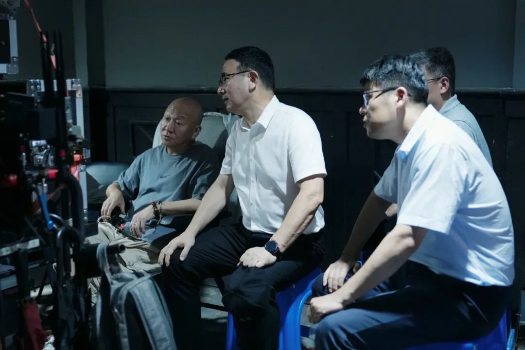 在电视剧《激战苍穹》拍摄片场,王中书记一行看片花、看置景,与该剧导演林柯、王飞,制片人张敏、武林,以及主演梁靖康、宋禹等深入交流,询问拍摄进度、了解剧组工作生活等情况,对主创团队精益求精的创作态度和扎实细致的敬业精神表示充分肯定。