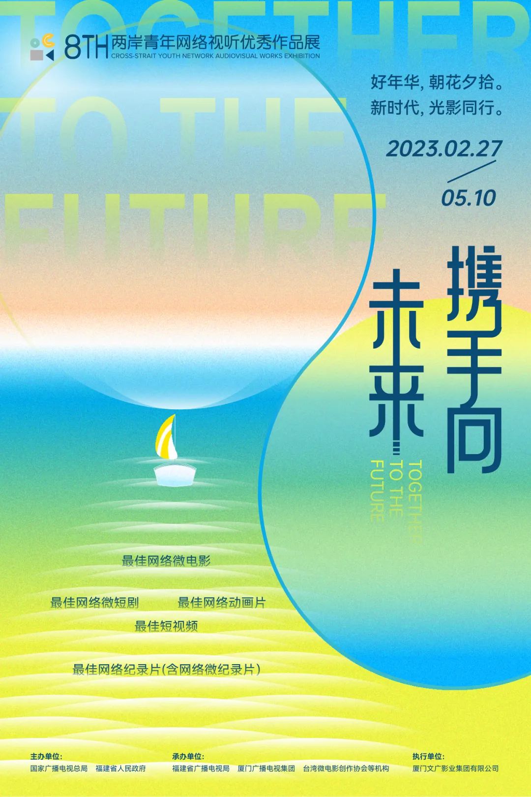 第八届海峡两岸青年网络视听优秀作品展作为第十五届海峡影视季主要活动之一,以“携手向未来”为主题,吸引了两岸广播电视和网络视听机构、行业协会、高等院校及影视团队积极参与。 该活动于2023年2月27日开启作品征集,包括“网络微电影、网络纪录片(含网络微纪录片)、网络动画片、短视频、网络微短剧”五个单元。本次活动吸引了两岸广播电视和网络视听机构、行业协会、高等院校及影视爱好者的积极参与。截至5月10日,本届活动共收到1610部作品投稿,主要是中国大陆1500部,中国台湾99部,中国香港1部。另外还有其他一些国家的华人华裔创作者投稿(法国2部,韩国1部,美国1部,新加坡3部,英国3部)。