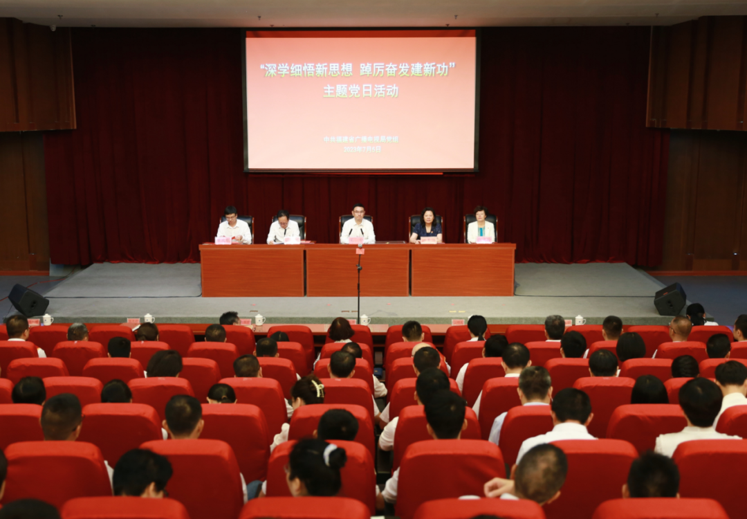 为庆祝中国共产党成立102周年,7月5日,省广电局党组开展“深学细悟新思想 踔厉奋发建新功”主题党日活动。省委主题教育第八巡回指导组组长游美萍到会指导。省广电局领导王中、张明生、张文珍、廖庆聪,省委主题教育第八巡回指导组成员出席活动。驻局纪检监察组、局机关、局属单位全体党员,离退休党员、总局驻闽单位党员、广电协会党员代表参加活动。