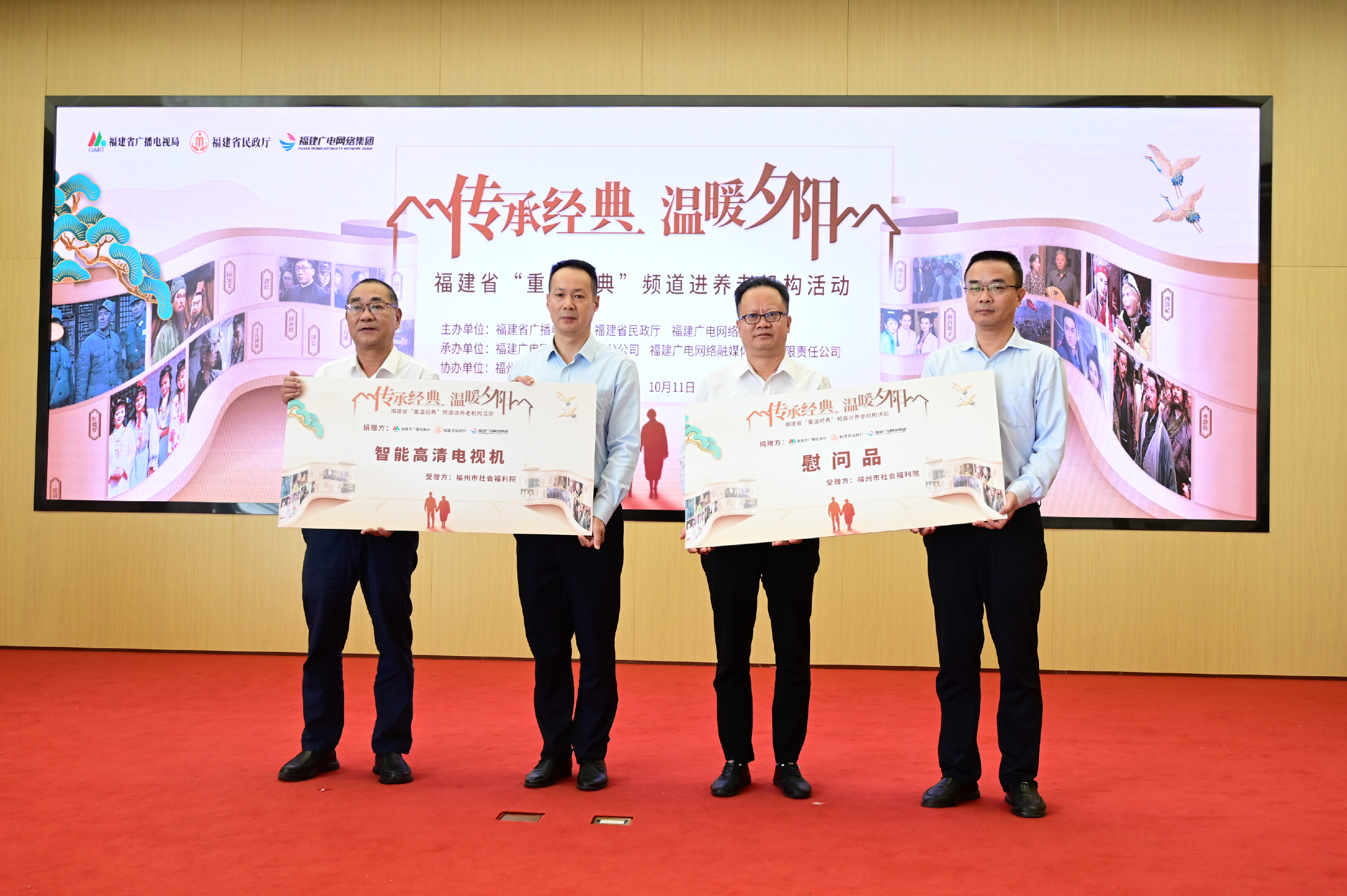 活动现场,主办方还向福州市社会福利院捐赠了智能高清电视机和重阳节慰问品。