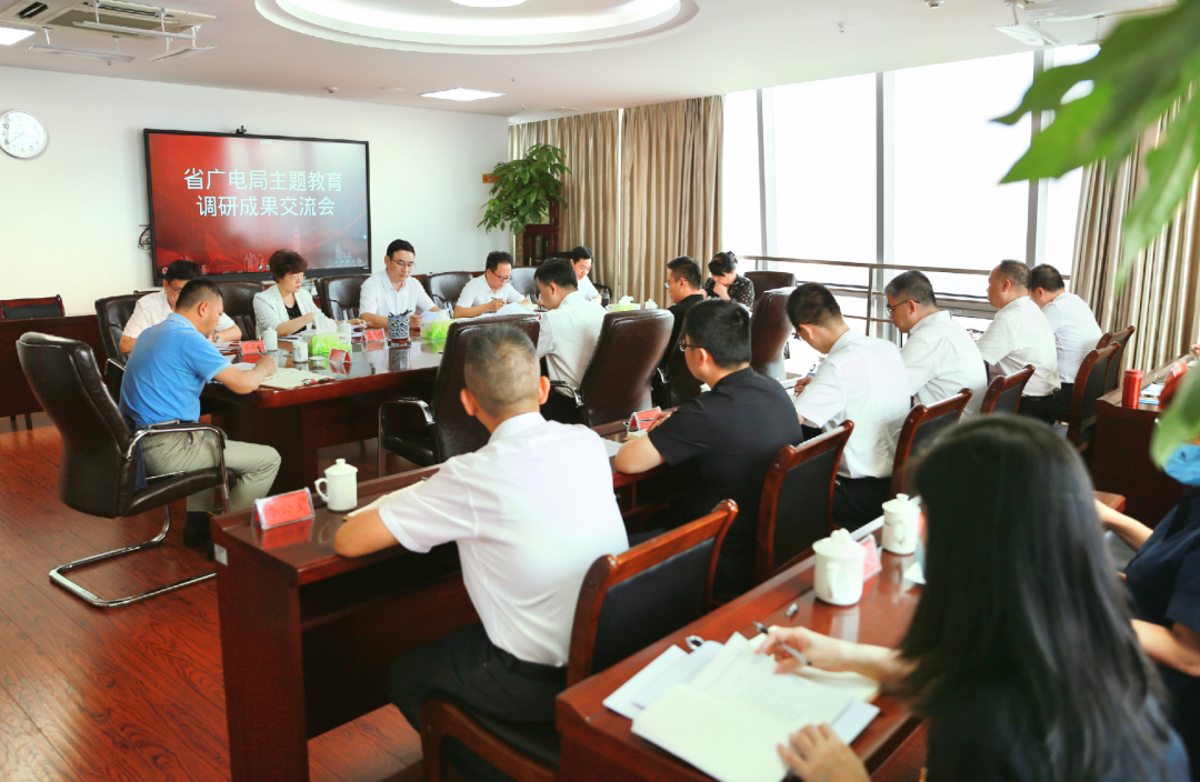 8月1日,省广电局党组召开主题教育专题调研成果交流会。局党组书记王中主持会议并讲话。省委主题教育第八巡回指导组副组长陈忠霖、成员张知瑞到会指导。局党组成员,局机关处室、局属单位各党支部负责人参加会议。