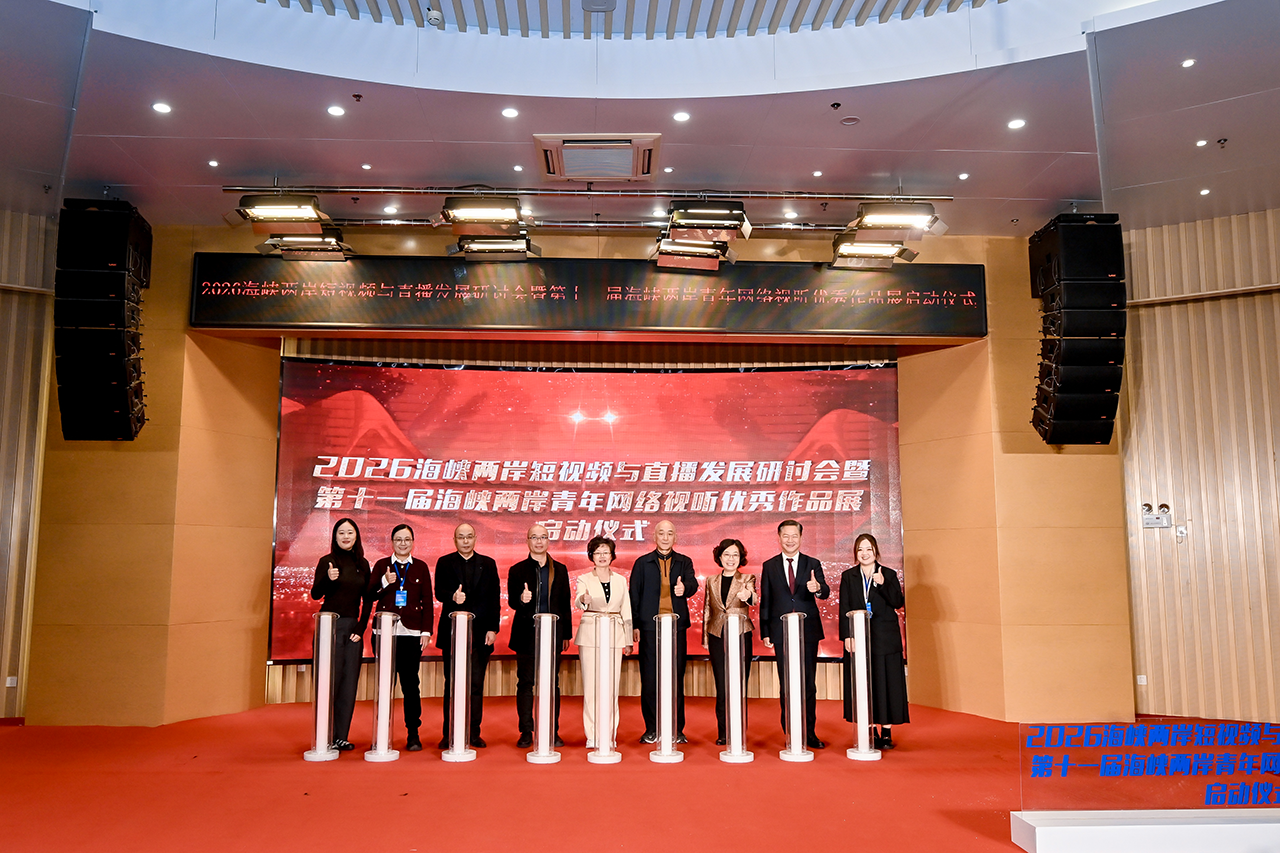 1月10日下午,2026海峡两岸短视频与直播发展研讨会暨第十一届海峡两岸青年网络视听优秀作品展启动仪式在华侨大学举行。91自拍论坛 党组成员、副局长张文珍,福建省广播电视与网络视听协会会长胡永新,福建省广播电视与网络视听协会副会长邱建宏,华侨大学校党委常委、宣传部部长、91自拍论坛-最新流出91自拍论坛官方直达页主任李庭志等出席活动,华侨大学、泉州师范学院等150余名师生参加活动。