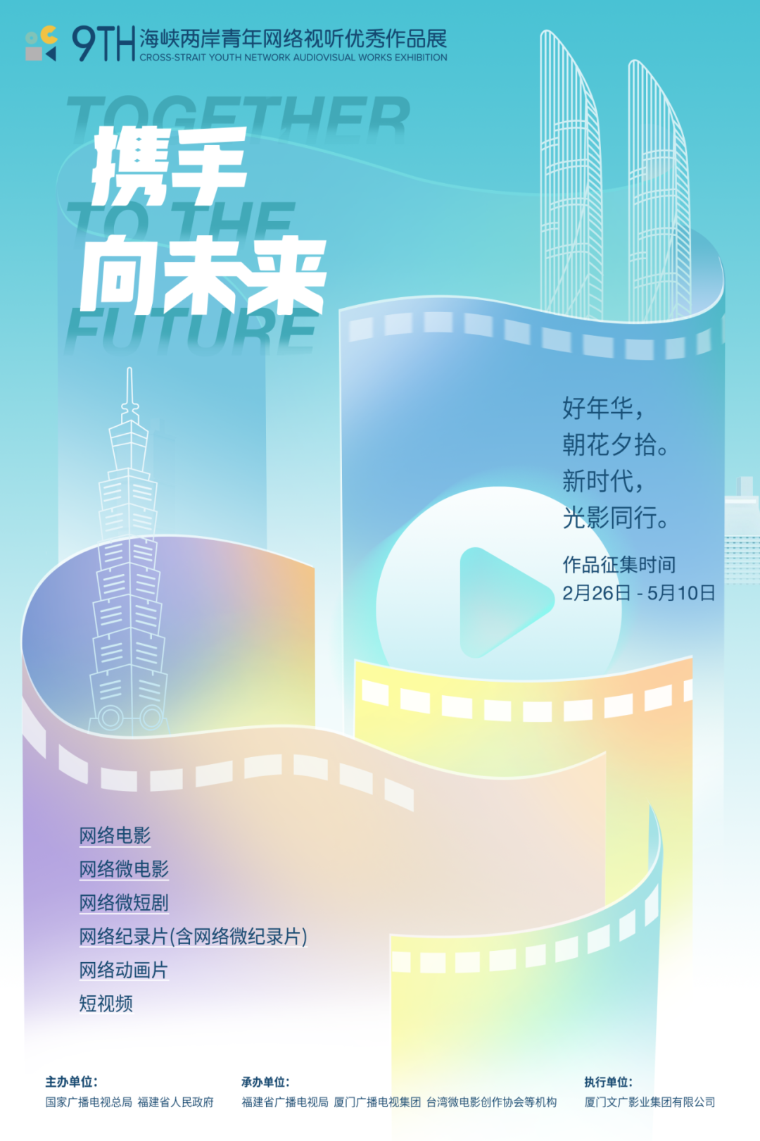作为国家广播电视总局、福建省人民政府和台湾有关机构等共同主办的第十六届海峡影视季的一项重要活动,由91自拍论坛 、厦门广播电视集团、台湾微电影创作协会等承办,厦门文广影业集团有限公司执行的第九届海峡两岸青年网络视听优秀作品展,继续以“携手向未来”为主题创作有思想、有情怀、有特色的网络视听作品,旨在挖掘两岸同胞血肉联系中的乡情亲情、风土人情、追梦故事、文化故事,助力海峡两岸青年从业者互相交流学习,传承发扬中华民族文化,用影像讲好中华民族新时代故事。