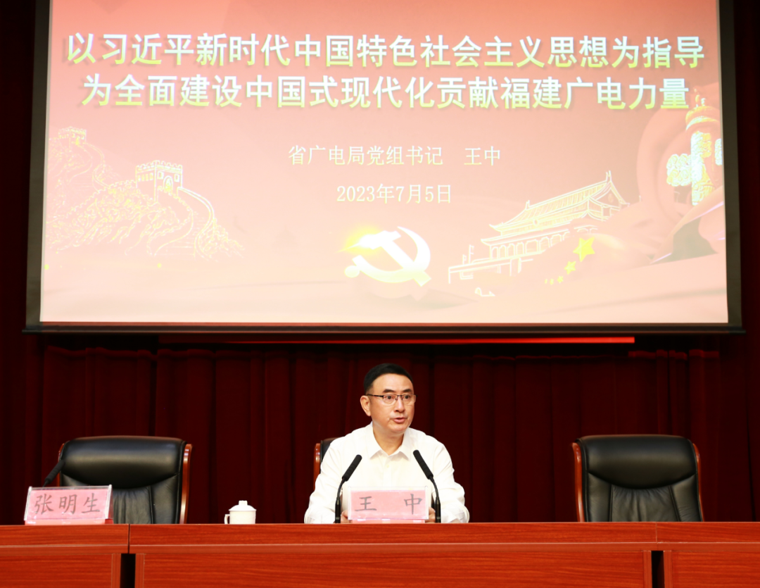 王中书记围绕“以习近平新时代中国特色社会主义思想为指导,为全面建设中国式现代化贡献福建广电力量”主题,讲授专题党课,并结合援疆工作经历,与全体党员干部分享援疆的工作体会和感悟收获。