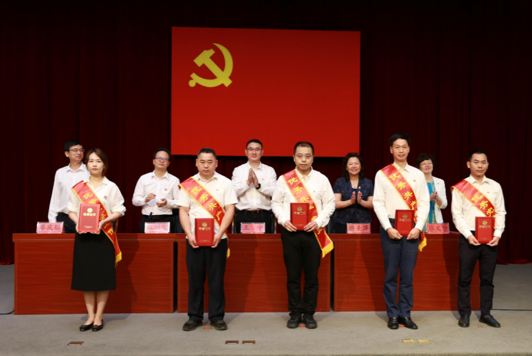 局党组书记王中带领全体党员干部重温入党誓词,省委主题教育第八巡回指导组领导、局领导为获得“两优一先”和党支部“达标创星”先进集体、先进个人代表颁发奖牌和证书。