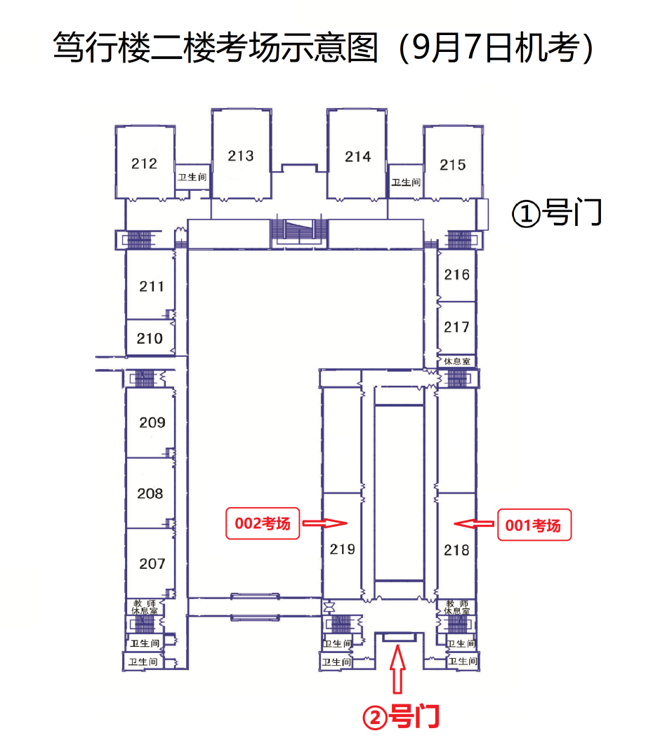 1、到达学校门口(西南门)--出示准考证、身份证;②笃行楼2号门前,警戒线外区域休息等待;③进考场核验身份证、准考证。