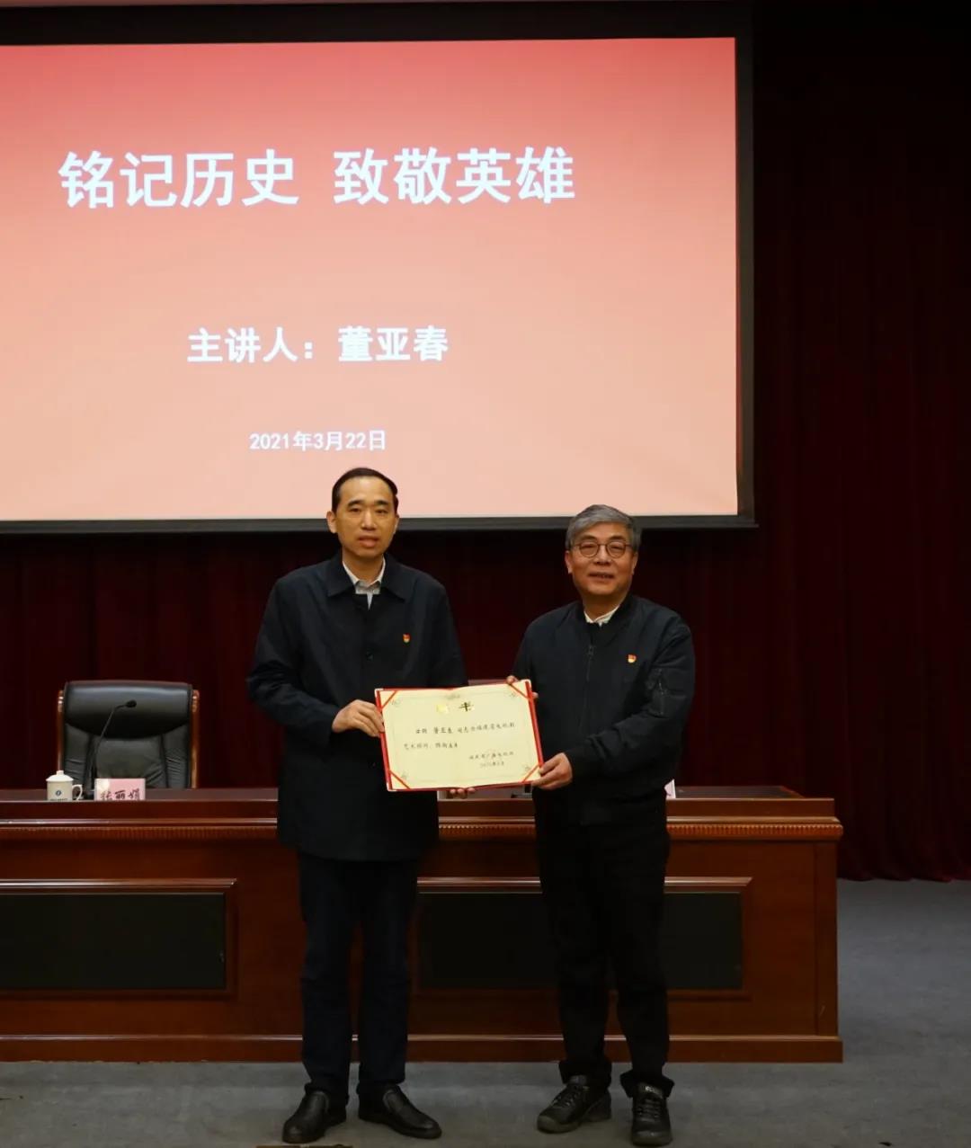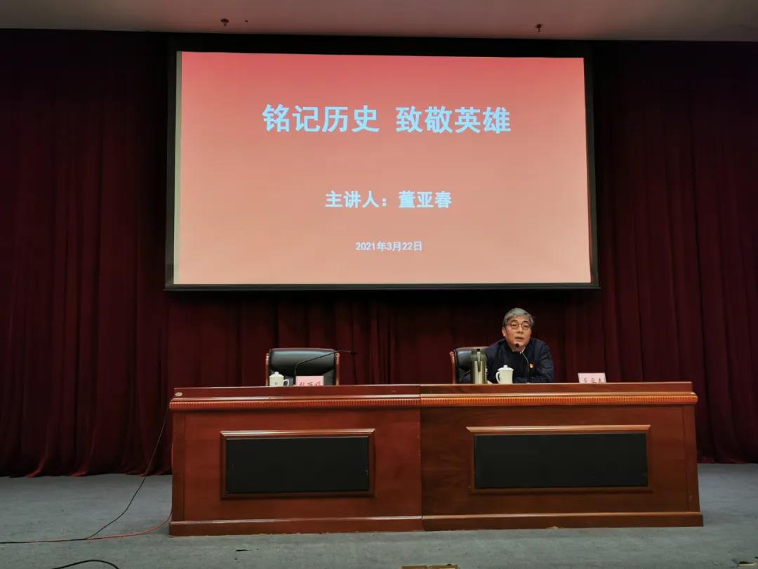 3月22日上午,省广电局、省广播影视集团共同举办“铭记历史 致敬英雄”党史学习教育专题讲座,邀请原八一电影制片厂一级导演董亚春同志作“铭记历史 致敬英雄”专题报告。董亚春导演声情并茂地讲述执导《跨过鸭绿江》《绝命后卫师》等电视剧的感受体会,通过影视作品礼赞革命先烈的崇高精神。他表示,福建是红色革命故事的“富矿”,将继续参与福建红色题材影视作品创作生产。