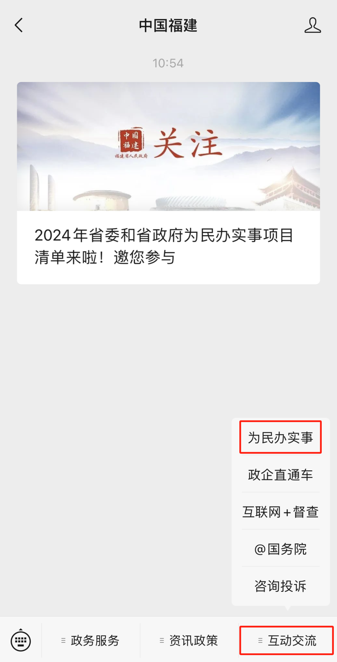 进入“中国福建”公众号页面