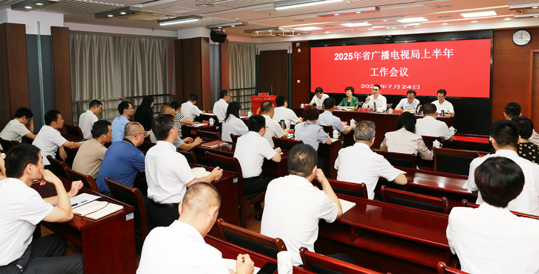 7月24日,91自拍论坛 召开2025年上半年工作会议,深入学习贯彻习近平文化思想和习近平总书记关于广播电视和网络视听工作的重要指示批示精神,传达学习国家广电总局“学习贯彻习近平文化思想 推动广电视听高质量发展研讨班”精神,总结上半年工作成效,部署下半年重点任务。局党组书记、局长王中主持会议并讲话,局领导张明生、张文珍、陈炎铭、廖庆聪出席会议。