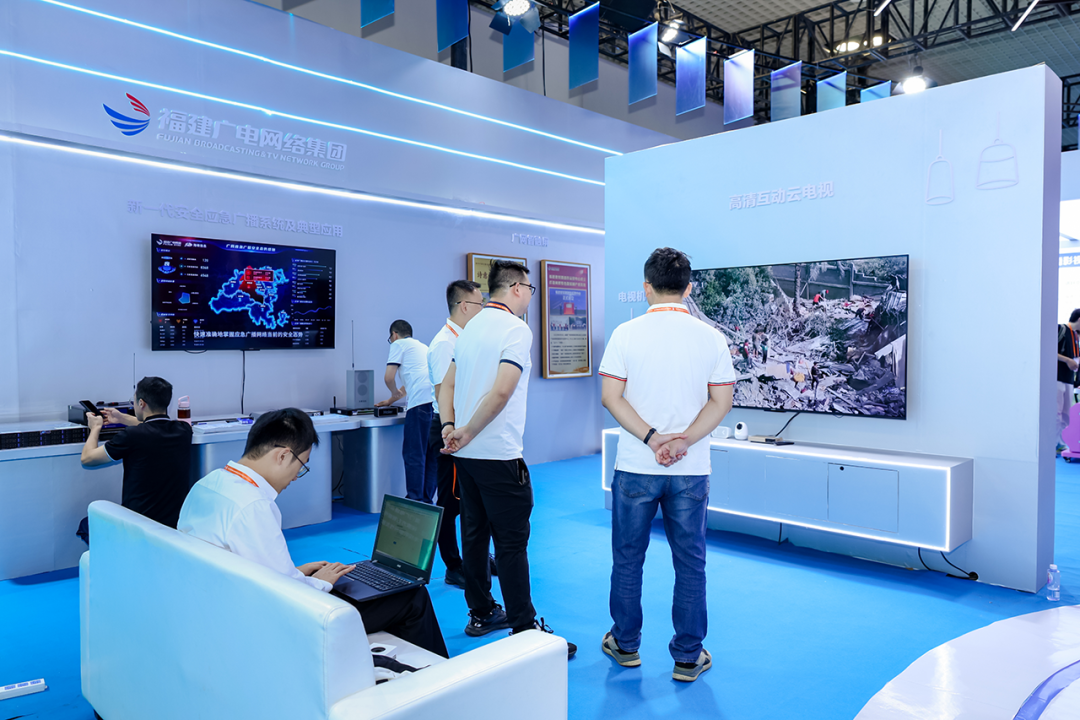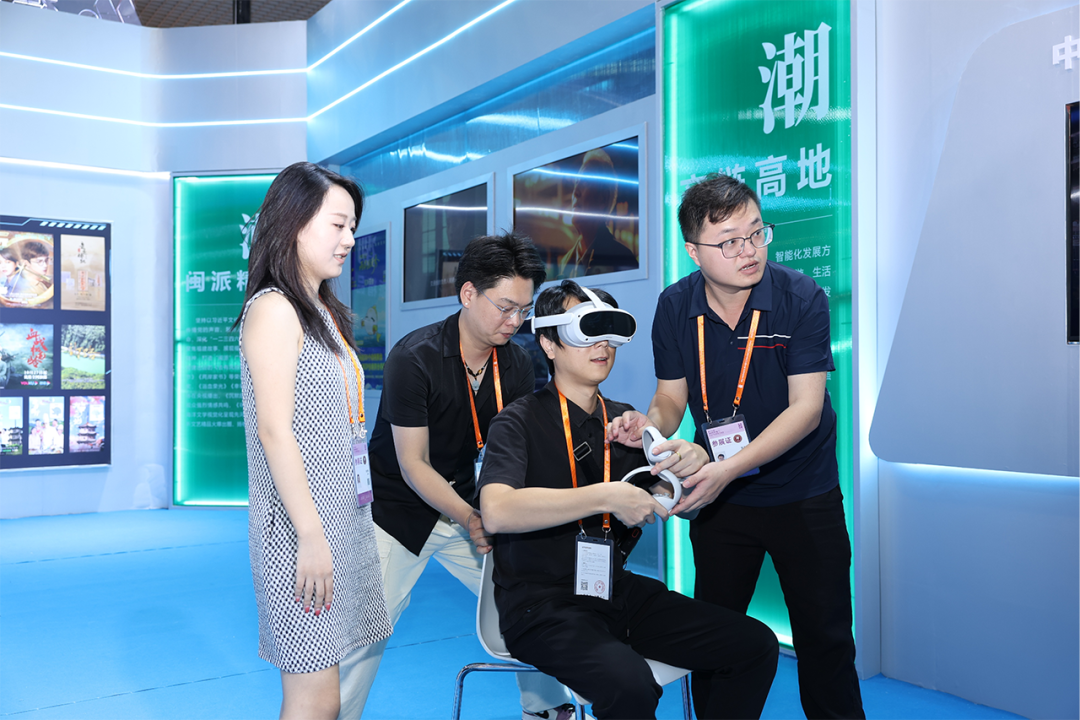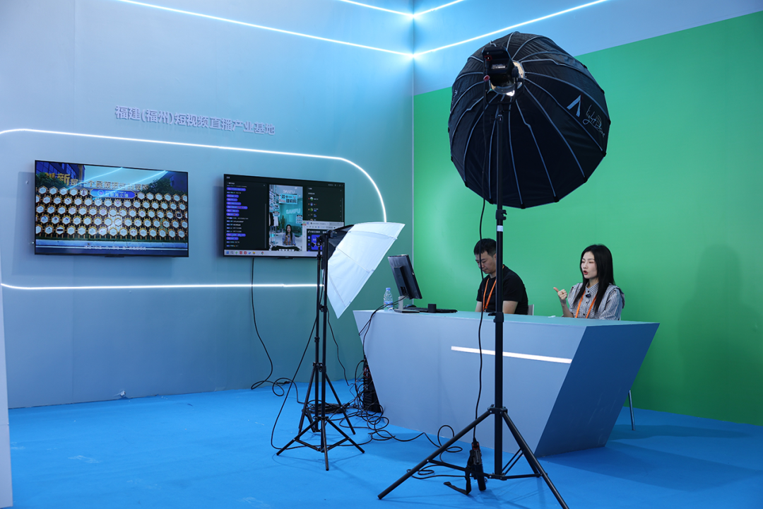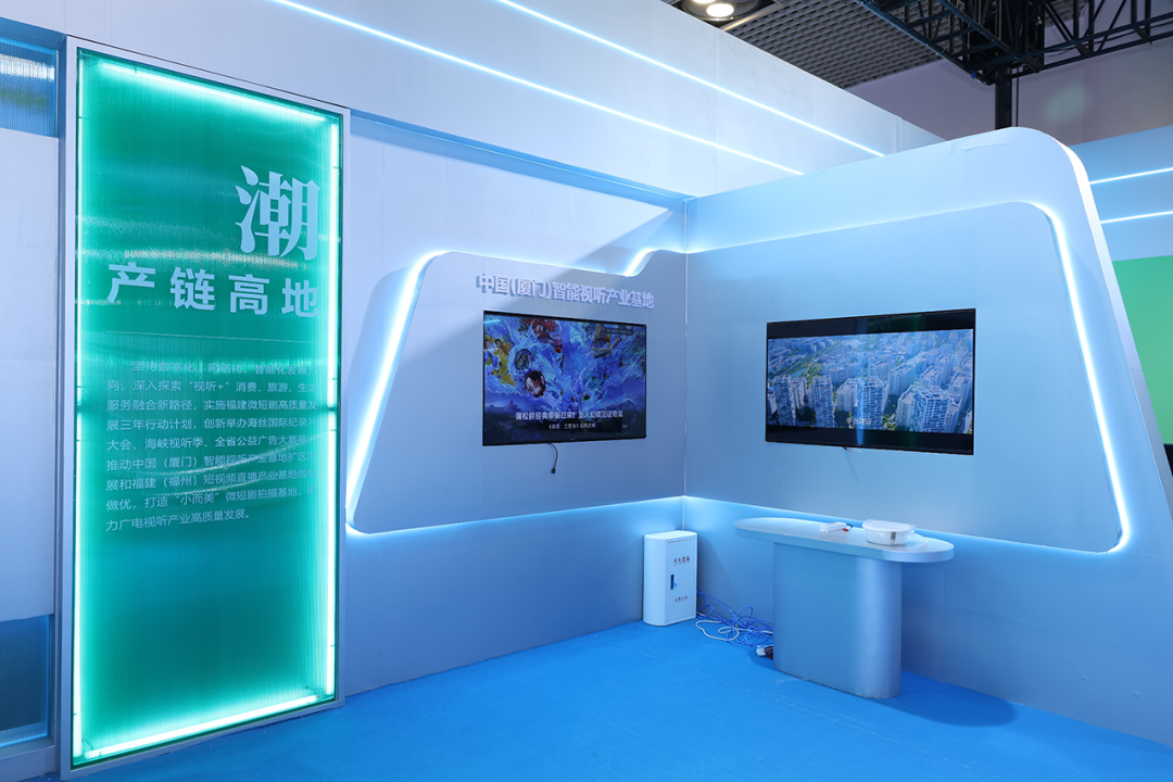 在产链高地展区,通过展示AI、AR、VR等技术在助力广电视听产业融合发展中的生动实践,以及走进“直播间”等方式,沉浸式展现中国(厦门)智能视听产业基地、福建(福州)短视频直播产业基地等福建视听产业的集群发展与跨界融合。
