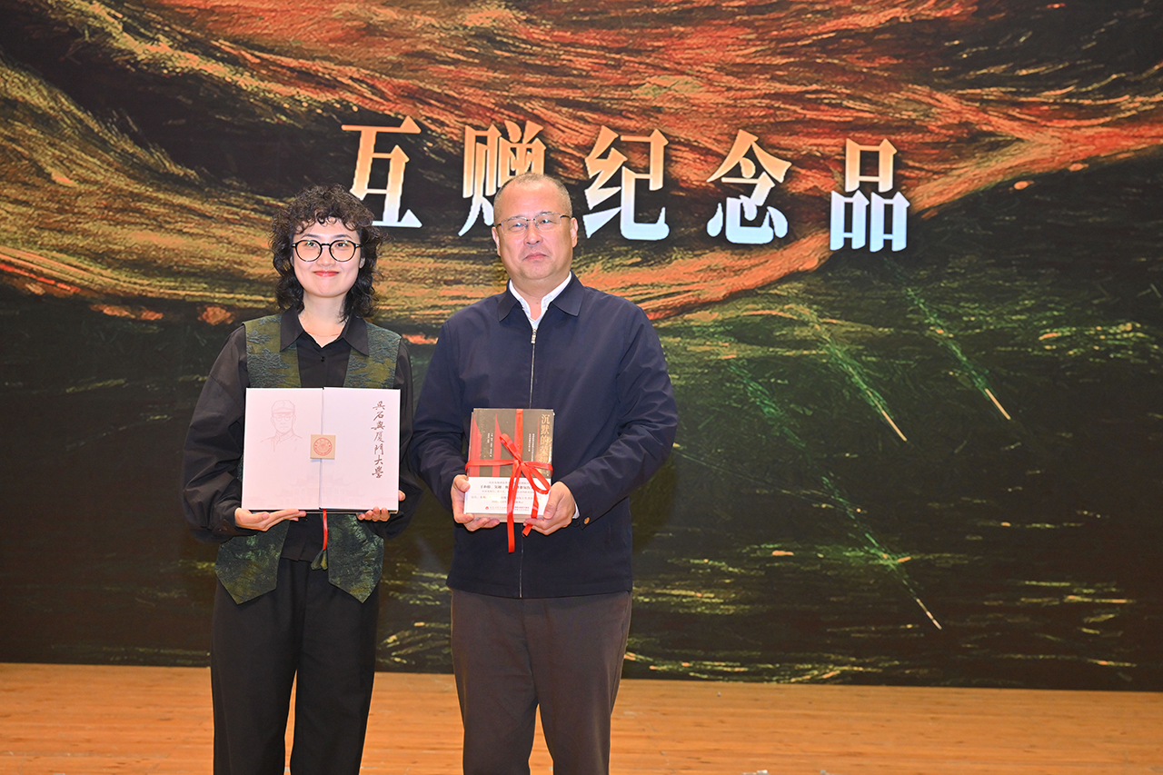 厦门大学向主创团队赠送《吴石与厦门大学》纪念图册,图册内容源自馆藏14种吴石将军编刊著述及其竭力留存的文献图录。片方代表也向厦门大学回赠了《沉默的荣耀》同名小说。