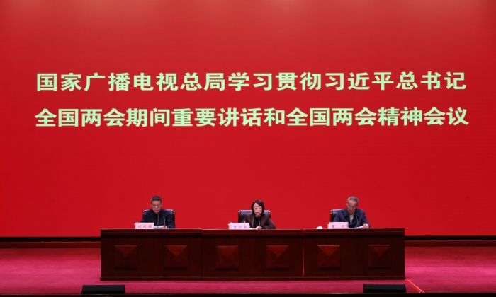 3月17日,国家广播电视总局召开会议,传达学习习近平总书记在全国两会期间的重要讲话和全国两会精神,部署广播电视和网络视听贯彻落实工作。中央宣传部副部长,国家广播电视总局党组书记、局长曹淑敏作传达并进行部署,国家广播电视总局党组成员、副局长董昕、刘建国出席会议。