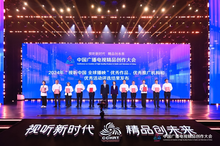 2024年“视听中国 全球播映”评选结果于10月28日在2025中国广播电视精品创作大会开幕式暨主论坛发布。中央宣传部分管日常工作的副部长胡和平,中央宣传部副部长,国家广播电视总局党组书记、局长曹淑敏为获评优秀的作品和机构代表颁发证书。