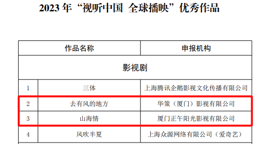 日前,中央宣传部、国家广播电视总局组织评选2023年“视听中国 全球播映”优秀作品和优秀推广机构。10月11日,中国广播电视精品创作大会公布评选结果,福建电视剧《去有风的地方》《山海情》获奖,占此次获奖优秀影视剧作品的50%;此外,网络剧《漫长的季节》和短视频《Ameen的福建时间》入围。