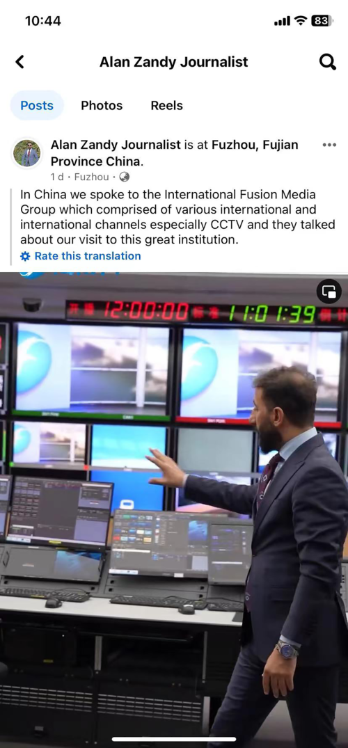 伊拉克记者Alan Zandy个人社交账号转载参访视频。