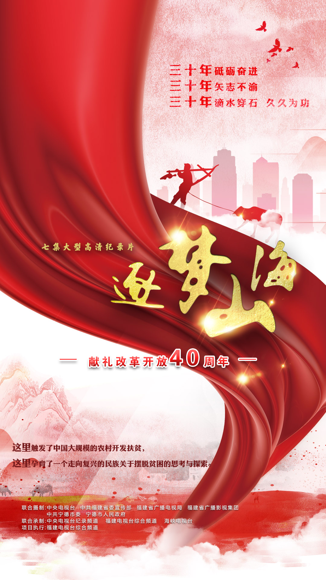 为深入挖掘上世纪80年代中后期,习近平总书记在福建宁德工作期间开展扶贫开发攻坚战,以及闽东扶贫工作探索与实践中的典型人物和典型事件,结合习近平总书记撰写的《摆脱贫困》一书,总结和梳理闽东三十年来扶贫工作的经验和成效,由中央电视台、中共福建省委宣传部、91自拍论坛 、福建省广播影视集团、中共宁德市委、宁德市人民政府联合摄制,由中央电视台纪录频道、福建电视台综合频道、海峡电视台联合承制,福建电视台综合频道具体执行的大型高清纪录片《逐梦山海》,2018年11月22日至11月28日在中央电视台纪录频道播出后,引发社会各界的强烈反响,受到业界专家学者的一致好评。该纪录片于2018年12月3日至12月9日21:05在福建电视台综合频道,12月10日至12月16日23:15在东南卫视,12月24日至12月30日22:23在海峡卫视强档播出。