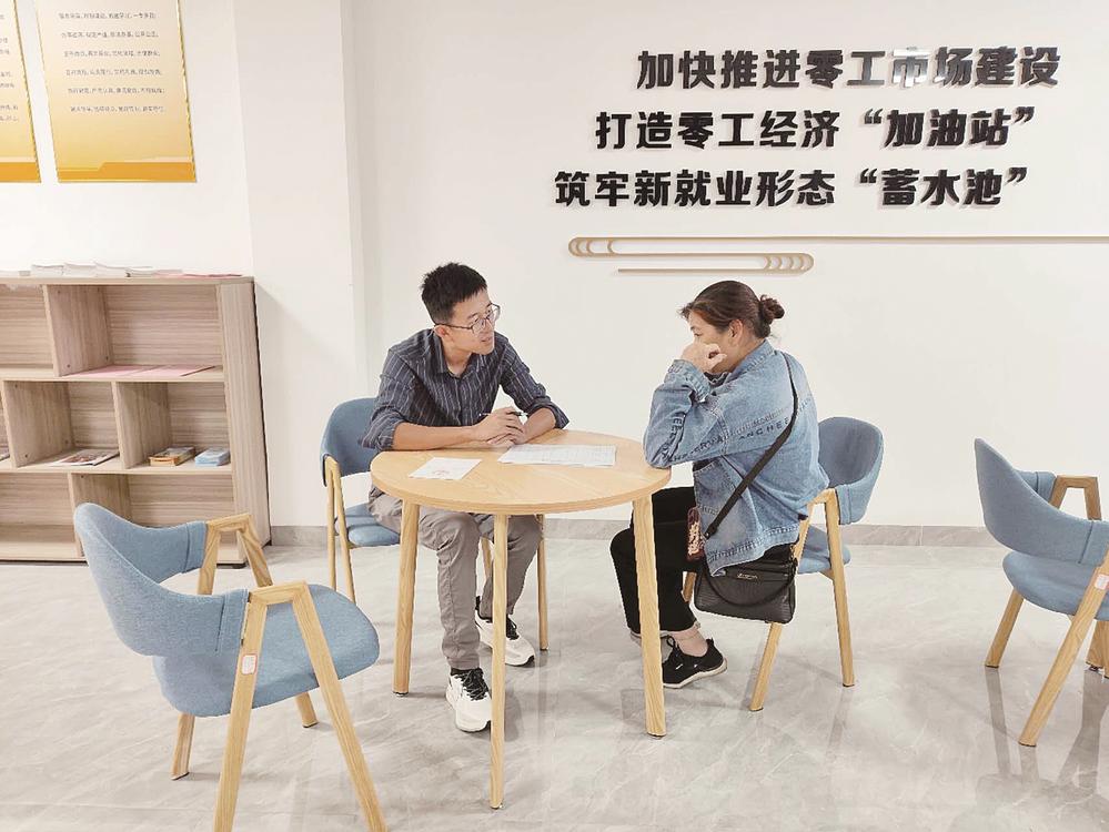 为进一步扩大就业服务覆盖面,最大限度满足群众的就业服务需求,除零工市场服务中心外,在商场、社区等前沿阵地还延伸拓展了“零工服务驿站”,通过“中心—驿站”的辐射模式,进一步拓宽就业和职业培训受众面,打通就业服务“最后一公里”,实现老百姓家门口“15分钟”就业服务圈。