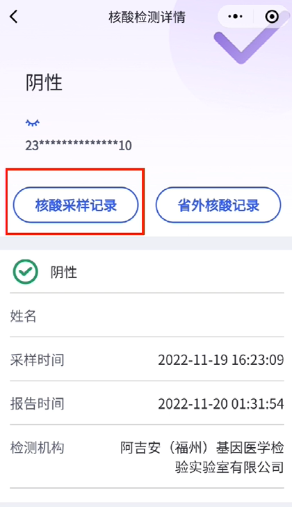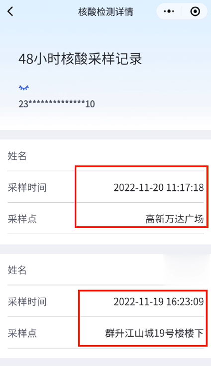 点击“核酸采样记录”,即可查看48小时内核酸检测记录↓↓↓
